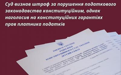 The Court declared the fine for violation of tax legislation constitutional, however emphasised the constitutional guarantees of taxpayers' rights (summary of the decision)