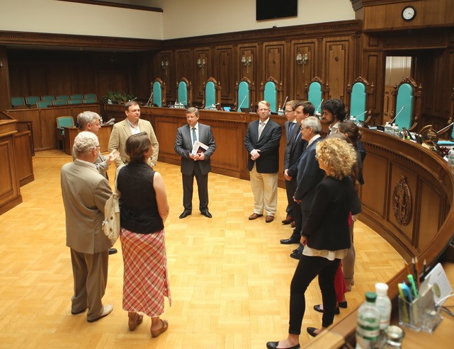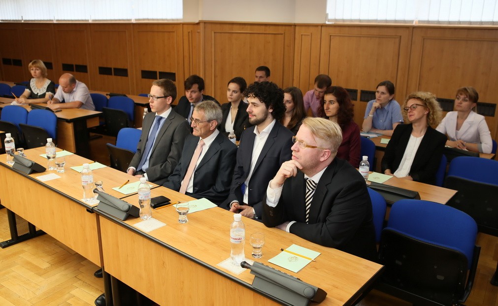 On May 27, 2014 on the request of the Faculty of Law of the National University of "Kyiv-Mohyla Academy" a group of participants of the Ukrainian-German seminar on legal regulation of political parties and public organisations composed of doctors of law and political science, young scholars, and students who work and study at the Political Parties Law Institute at the University of Düsseldorf visited the Constitutional Court of Ukraine where they met judges of the Constitutional Court Petro Stetsiuk, Viktor Shyshkin, Stanislav Shevchuk, and Dean of the Faculty of Law of the National University of "Kyiv-Mohyla Academy" Andrii Meleshevych.
