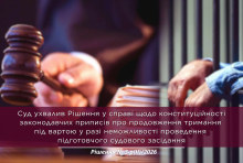 Суд ухвалив Рішення у справі щодо конституційності частини п’ятої статті 615 Кримінального процесуального кодексу України про продовження тримання під вартою у разі неможливості проведення підготовчого судового засідання (резюме Рішення)