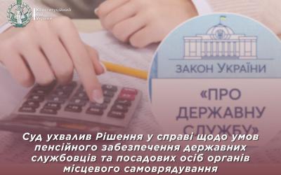 Суд ухвалив Рішення у справі щодо умов пенсійного забезпечення державних службовців та посадових осіб органів місцевого самоврядування