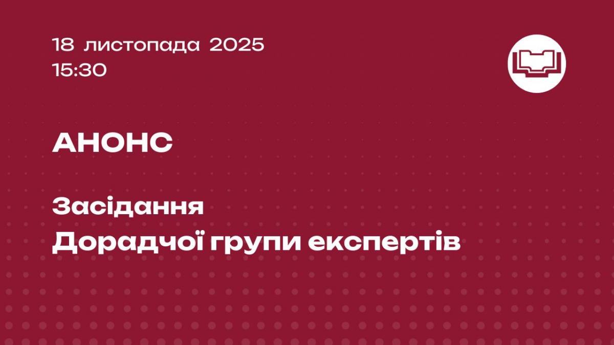 У вівторок, 18 листопада 2025 року, о 15:30 відбудеться офіційне засідання Дорадчої групи експертів.