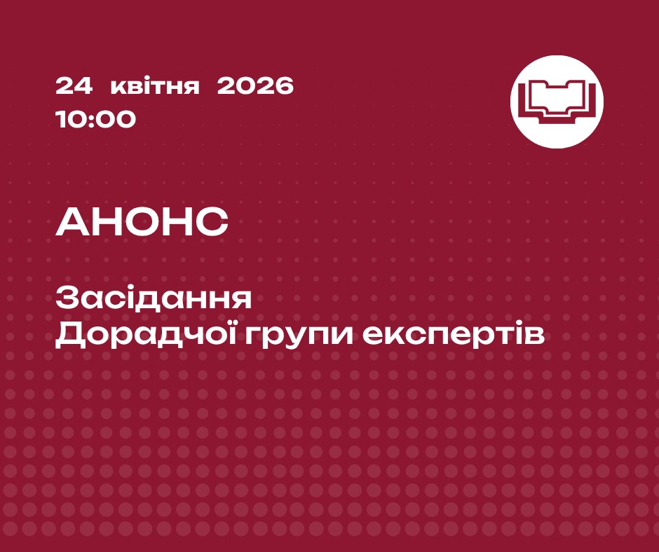 У пʼятницю, 24 квітня 2026 року, о 10:00 відбудеться засідання Дорадчої групи експертів, на якому планується розглянути питання щодо етапу оцінювання рівня компетентності кандидатів на посади суддів Конституційного Суду України за квотою призначення Верховною Радою України.